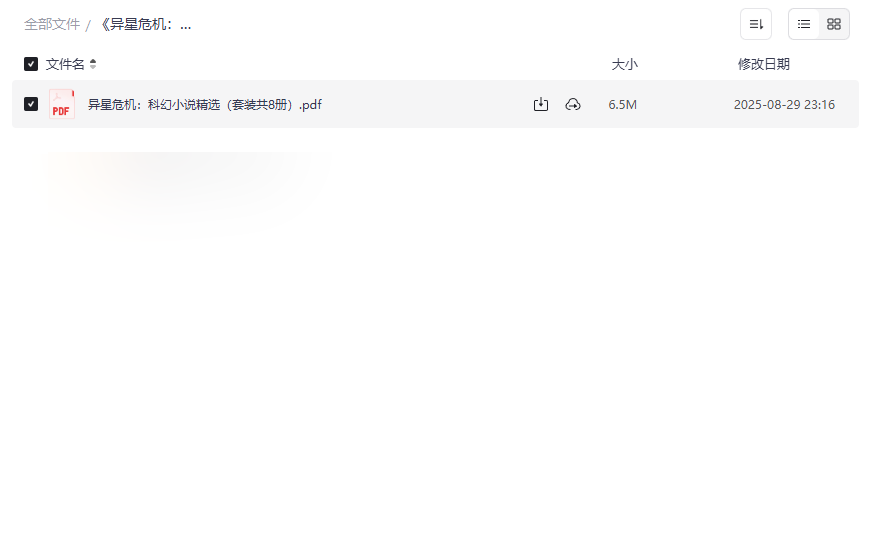 这套资源以PDF格式提供,确保了高清晰度和易读性,方便在多种设备上离线阅读。亮点在于其完整性,一次性收录8册热门科幻小说,避免了零散搜索的麻烦。特别适合忙碌的现代读者,可以随时随地进入科幻世界,无需担心网络连接问题。 - 格式优势 | 支持电脑、平板和手机,兼容性强
