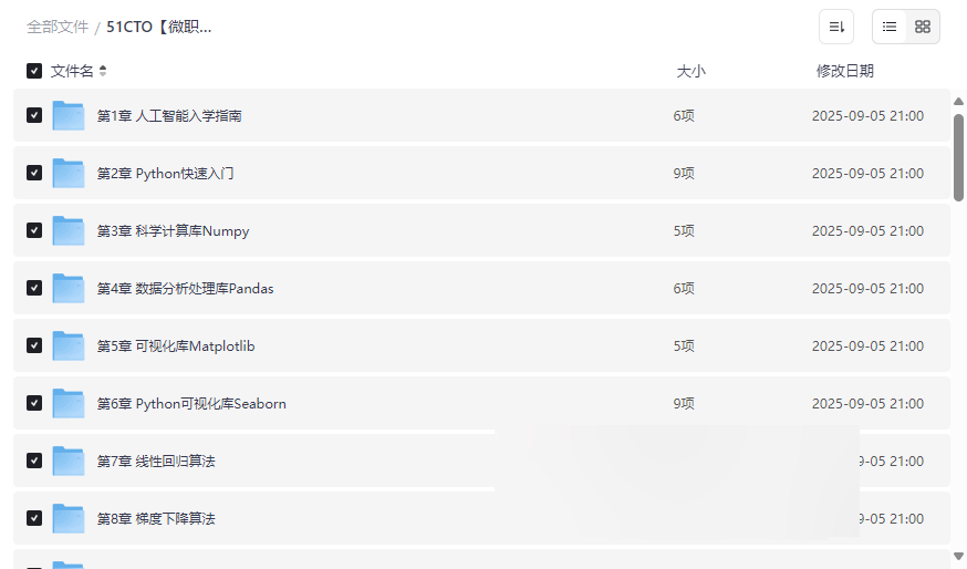在人工智能与数据科学蓬勃发展的今天,Python已成为数据分析与机器学习的首选语言。本资源集合了51CTO微职位的Python数据分析与机器学习实战课程配套视频,涵盖从Python基础入门到机器学习核心算法,再到多个实战项目的完整学习路径。课程内容由浅入深,结合Numpy、Pandas、Matplotlib、Seaborn等主流库,以及线性回归、逻辑回归、决策树、随机森林、贝叶斯算法、支持向量机等经典算法,适合: