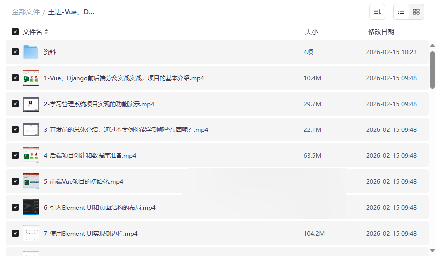 王进-Vue、Django前后端分离项目实战:学生管理系统V4.0资源目录