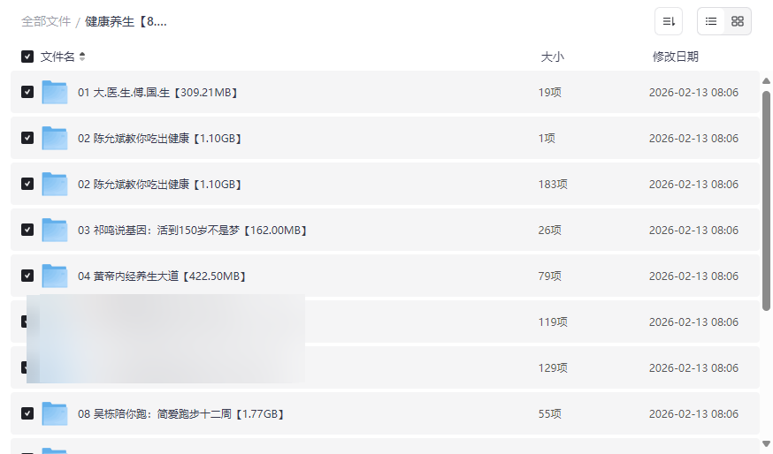 在快节奏的现代生活中,健康已成为我们最宝贵的财富。本资源合集精心收录了 涵盖饮食调理、基因科学、中医养生、癌症预防、心理减压、运动瘦身、心灵修习、睡眠改善及生活常识 等九大维度的权威音频课程,总容量高达8.98GB。这套全面的健康养生网盘资源,旨在将专业的健康知识转化为日常可实践的智慧,帮助每个人成为自己健康的第一责任人。它尤其适合: