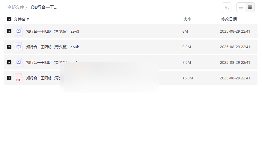 “知行合一”是明代心学大师王阳明的核心理念,强调知识与实践的统一。本资源特别推出青少版电子书,以通俗易懂的语言和生动案例,将深奥的哲学思想转化为适合青少年理解的国学启蒙内容。资源包含AZW3、EPUB、MOBI、PDF四种主流电子书格式,适配各类阅读设备,方便随时随地学习。这套资源特别适合: