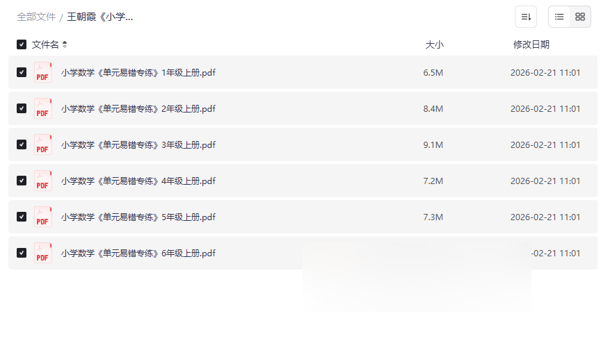 在小学数学的学习道路上,如何精准攻克知识难点、有效避免常见错误,是学生和家长共同关注的焦点。王朝霞老师主编的《小学数学单元易错专练》系列,正是针对这一痛点而生的经典教辅。本资源集合了 小学一至六年级上册 的完整PDF版本,系统梳理了每个单元的核心知识点与高频易错题型,旨在帮助学生查漏补缺、巩固基础、提升解题能力。这套资源的价值在于其精准的“靶向性”,将抽象的数学概念转化为具体的易错点分析,是课堂学习之外不可或缺的高效提分利器。它特别适合: