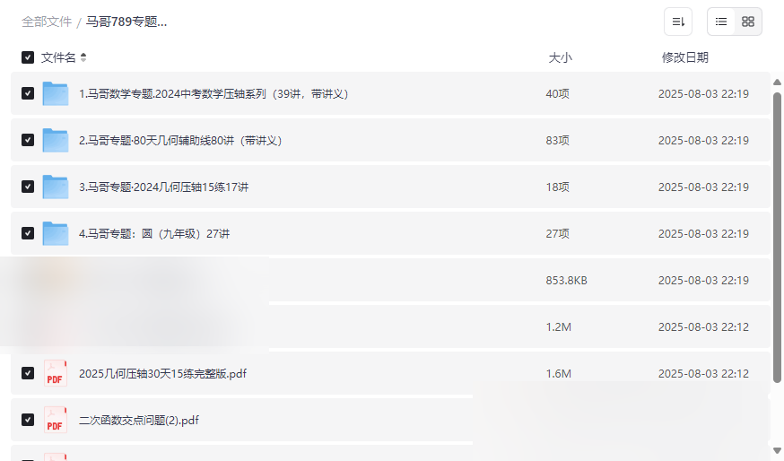 无论是冲刺中考、补强几何,还是专项突破函数与圆,这份全面而专业的网盘资源合集都能提供高效的学习支持。