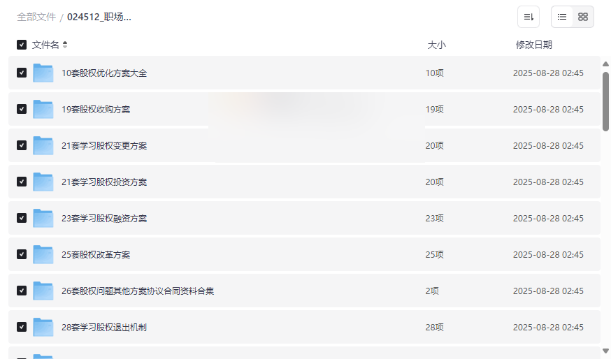 无论是初创企业搭建股权框架、成熟公司实施激励计划,还是处理并购与退出事务,这份高质量职场人力资源股权管理资源合集都能提供系统而实用的支持。