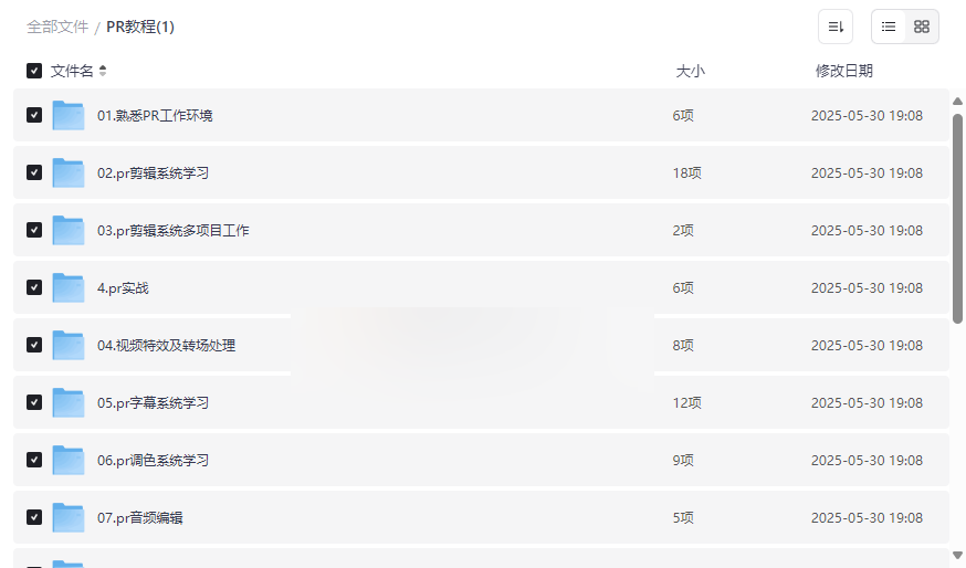 PR视频剪辑教程资源目录