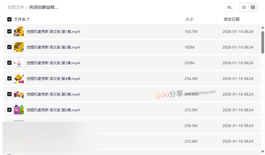 这是本资源的核心,提供了从第1集到第19集的完整剧集。每集围绕一个简单的工程任务或问题展开,情节紧凑、画面鲜艳、对话清晰且语速适中。最大的亮点在于其“情境式学习”,孩子们在观看麦克斯操作挖掘机、卡车、起重机完成工作的过程中,自然而然地吸收关于颜色、数字、形状、动作以及各种工程车名称的基础英语词汇。这种学习方式远比机械背诵更有效,能长久保持孩子的注意力。 - 纯正美式发音与重复性句型