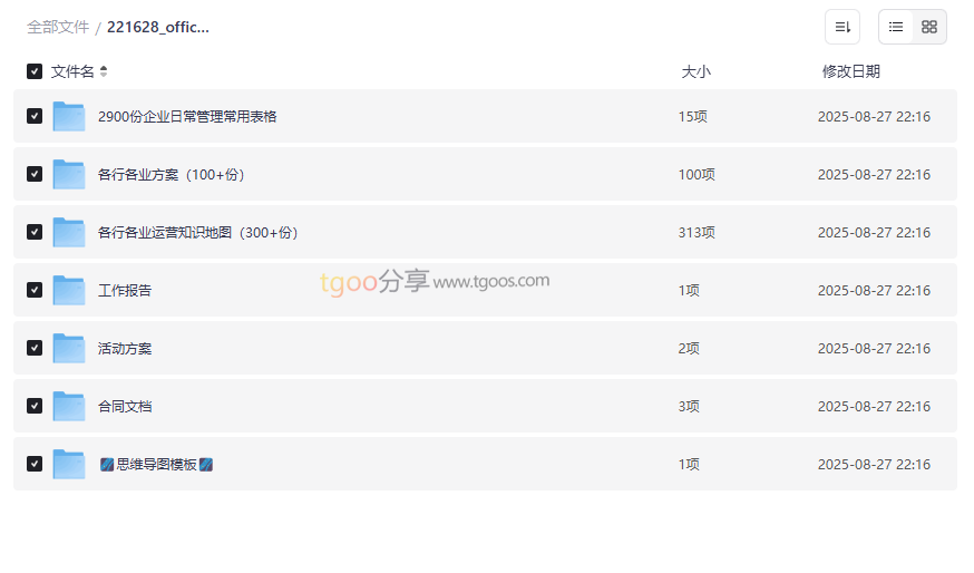 “221628_Office办公模板大全”作为一套全面覆盖企业日常管理与运营需求的资源合集,汇集了 2900份企业常用表格、300+份运营知识地图、100+份行业方案、活动策划文档、合同范本以及331个思维导图模板,将繁琐的办公任务系统化、标准化。这套资源不仅节省了用户自行设计表格与文档的时间,还提供了行业前沿的运营思维工具,适合: