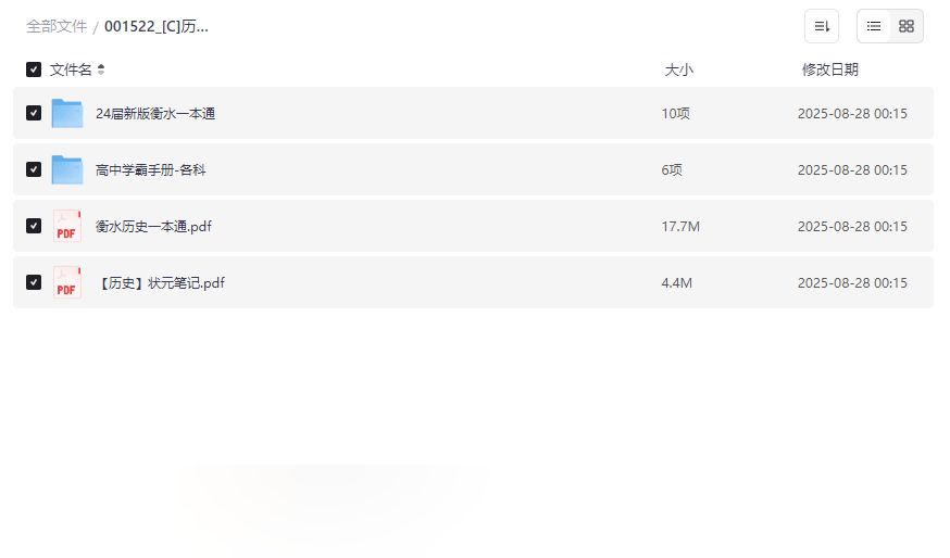 包含《衡水历史一本通》与《历史状元笔记》,这两份资料从不同维度提升历史学习效率: - 衡水历史一本通:系统梳理历史事件、人物与时间线,配有图表与归纳表,便于记忆与理解。
