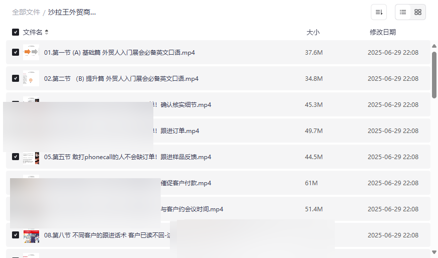“沙拉王外贸商务英语系列计划”是一套专为外贸从业者设计的实用英语沟通课程,覆盖从展会口语到订单跟进、客户谈判等核心业务场景。本资源集合了 展会必备口语、电话沟通技巧、客户跟进话术、谈判策略及逼单秘籍 等全方位内容,将英语学习与实际业务紧密结合,适合: