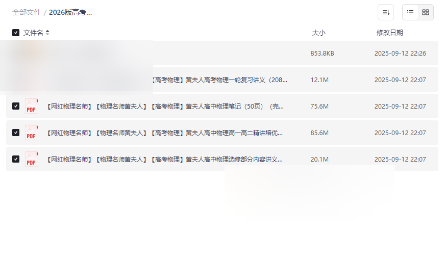 2026版高考黄夫人物理资源目录