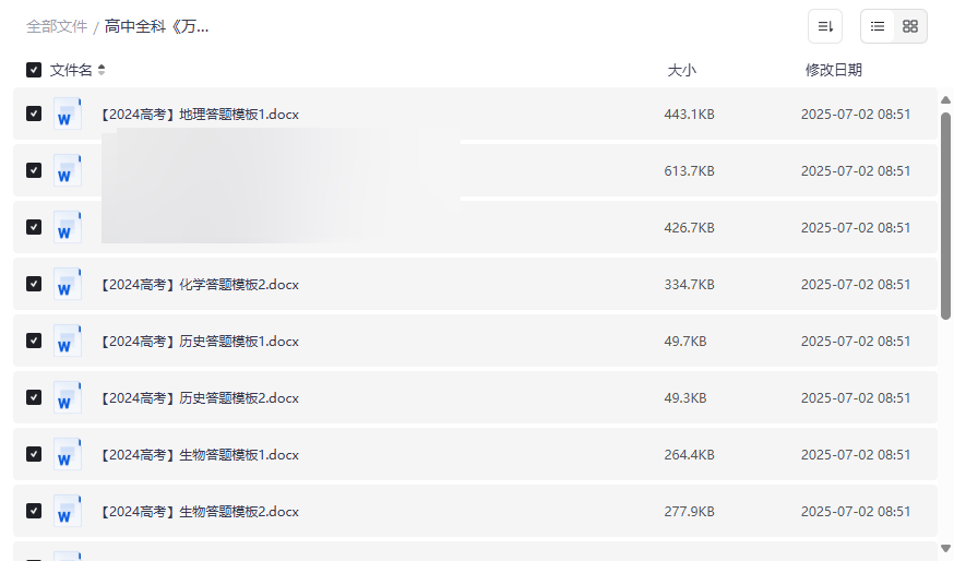《高中全科万能答题模板》是一套专为高考学生设计的实用备考资源,覆盖语文、数学、英语、物理、化学、生物、历史、地理、政治等九大学科。每个学科均提供两套精心编排的答题模板,旨在帮助学生快速掌握答题技巧、规范作答格式,并有效提升应试能力。无论是面对主观题还是客观题,这些模板都能提供清晰的解题思路和标准化的答题框架,助力学生在高考中取得理想成绩。这套资源特别适合: