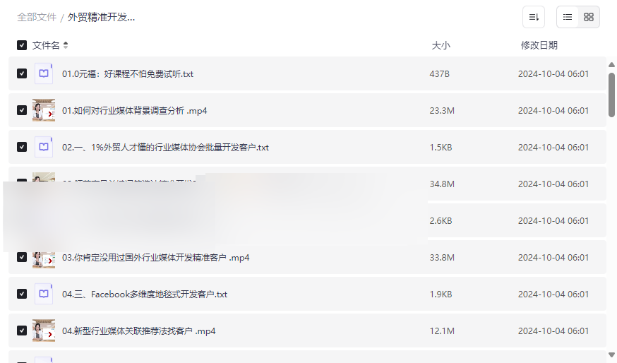 通过行业媒体背景分析、协会资源整合,实现批量精准客户挖掘。该方法被1%的外贸顶尖人才掌握,资源中包含多节实操视频: - 行业媒体关联推荐法 —— 借助国外行业平台推荐机制挖掘隐藏客户