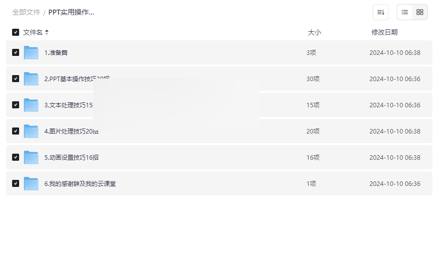 “PPT实用操作技巧大全”是一套专为提升PowerPoint操作效率与设计水平而打造的视频教程资源。本资源集合了 基础操作技巧、文本处理、图片处理、动画设置 等核心模块,覆盖从入门到精通的全面学习需求。通过系统化的视频讲解与实操演示,帮助用户快速掌握PPT制作的关键技能,适合: