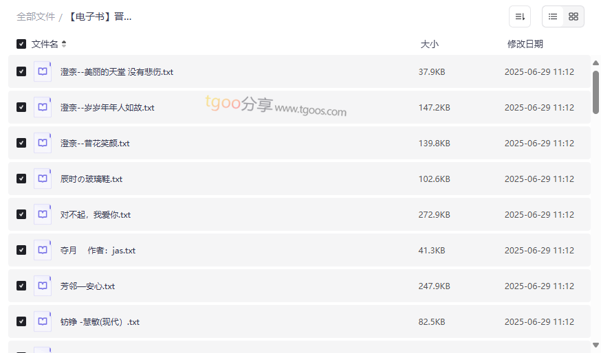 “晋江文学城”作为华语网络文学的重要平台,汇集了大量高质量的小说作品。本资源精选了 200本VIP完结文,覆盖言情、都市、古风、奇幻等多种题材,收录了多位知名作者的代表作,包括 匪我思存、寐语者、蒋胜男 等。这些作品不仅情节引人入胜,文笔细腻,而且均为完整完结版,避免了追更的烦恼。适合: