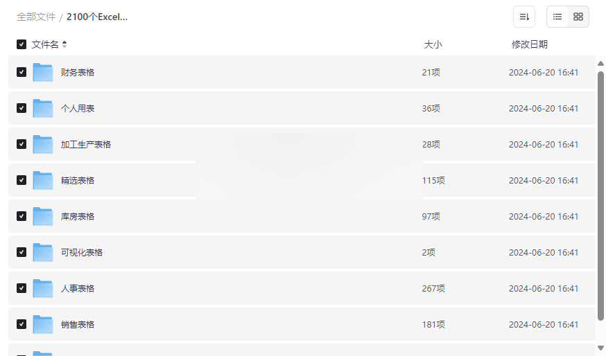 “2100个Excel表格模板合集”是一套全面覆盖企业及个人日常办公需求的实用资源库,涵盖财务、人事、销售、行政、生产、库房管理等多个领域。本资源整合了 财务预算分析、人事考核流程、销售业绩追踪、行政事务管理、生产计划控制、库存盘点优化 等丰富模板,不仅适用于企业高效运营,也能满足个人生活记录与规划需求。这套资源适合: