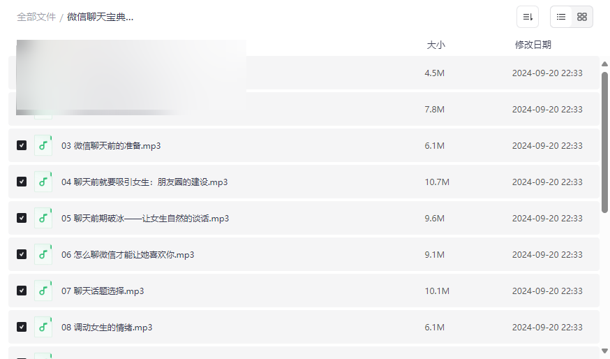 “微信聊天宝典”是一套专注于提升社交沟通技巧的音频课程,特别针对微信聊天场景设计。本资源集合了 聊天前的准备、破冰技巧、情绪调动、关系升级、邀约策略及案例分析 等核心内容,帮助用户系统掌握高效沟通方法。课程内容实用性强,结合真实案例解析,适合: