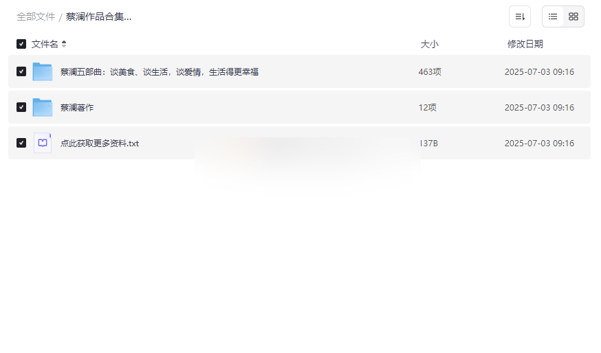 作为香港四大才子之一,蔡澜先生以其独特的生活哲学和美食文化随笔闻名于世。本资源集合了 蔡澜五部曲音频课程、生活美学著作、寻味世界系列、食材全书、书法艺术随笔 等多维度内容,将美食探索与人生智慧完美融合,适合: