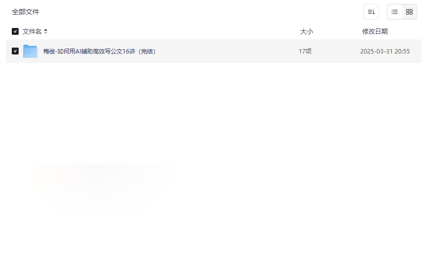 “梅俊-如何用AI辅助高效写公文16讲”作为前沿的公文写作与人工智能结合课程,为现代办公场景提供了全新的效率提升方案。本资源集合了 AI辅助公文写作的系统方法、多种公文类型实操案例、高效指令公式、以及减少加班负担的技巧 等多维度内容,将传统公文写作与现代AI技术深度融合,适合: