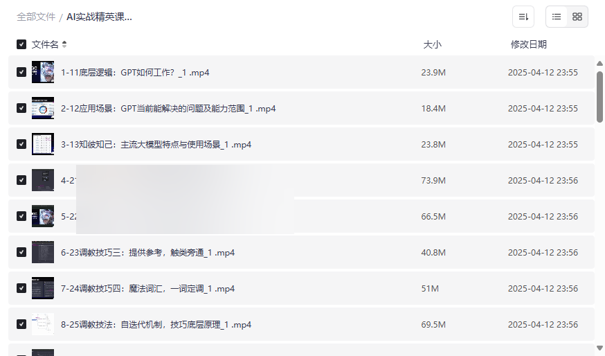 “AI实战精英课”作为前沿人工智能应用教程,全面覆盖ChatGPT与AI绘画等热门技术,帮助学习者快速掌握AI工具的核心技能与变现方法。本资源集合了 ChatGPT底层逻辑解析、精准调教技巧、GPTs实战应用、AI绘画入门到精通、多场景变现案例 等全方位内容,将理论知识与实战操作紧密结合,适合: