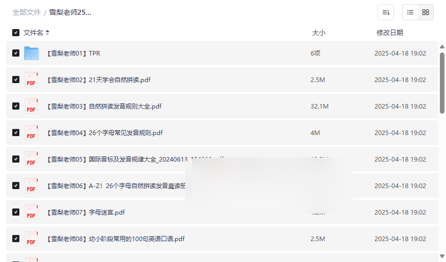 雪梨老师25套小学英语王炸学习资料目录