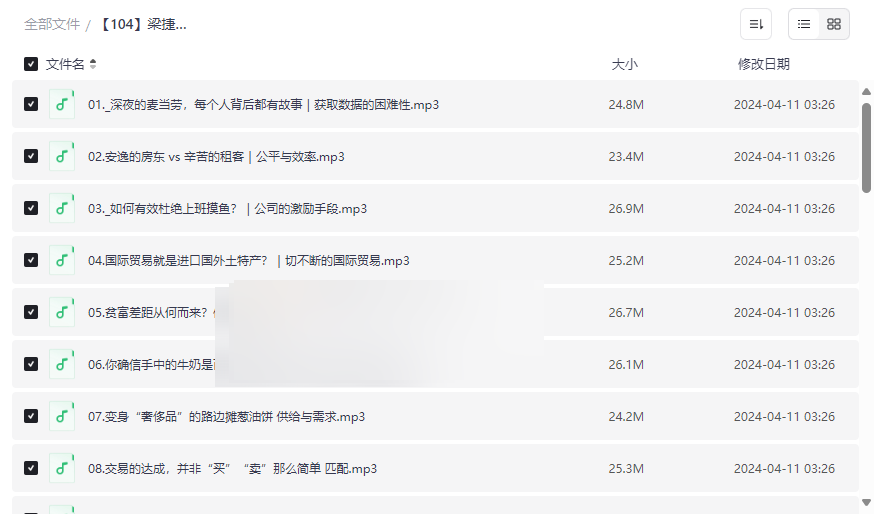 “梁捷:一平方公里内的经济学”是一门深入浅出的经济学音频课程,通过日常生活中的真实场景和案例,将复杂的经济学原理转化为易于理解的内容。本资源涵盖了 30节核心课程+多节番外及嘉宾分享,内容从数据获取、公平效率到城市化、幸福指数,全面解析经济学在生活中的应用。适合:
