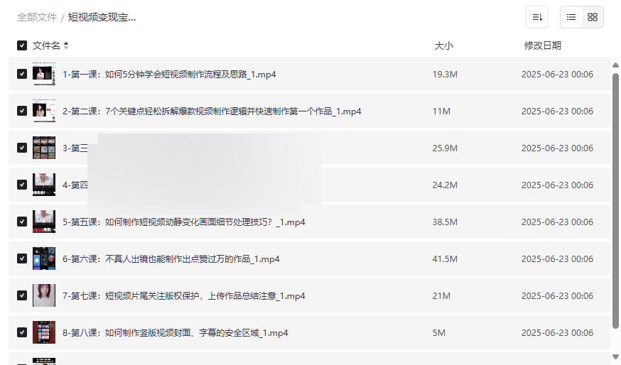 “短视频变现宝典:5分钟入门到爆款拆解”是一套专为短视频创作者量身打造的实用课程资源。本资源通过 9节系统课程,从零基础入门到高阶技巧,全面覆盖短视频制作、内容优化、变现逻辑等关键环节。课程设计注重实操性,每节课聚焦一个核心技能点,帮助用户快速上手并提升作品质量。无论是想通过短视频实现副业增收、个人品牌打造,还是企业内容营销,本资源都能提供清晰的学习路径和可复用的方法论。适合人群包括: