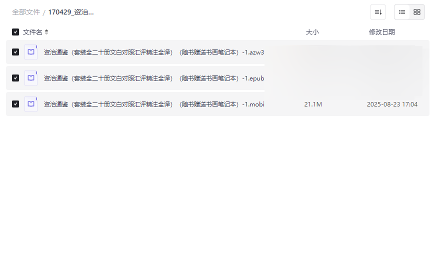 《资治通鉴》作为中国史学经典巨著,由司马光主编,系统记载了从战国到五代的历史变迁,被誉为“帝王之书”。本资源集合了全二十册文白对照、汇评精注、全译本,并附赠书画笔记本,将传统史学与现代阅读需求完美结合。这套资源不仅提供多种电子书格式(AZW3、EPUB、MOBI),还通过详尽的注释和翻译,帮助读者轻松理解古代文献。适合: