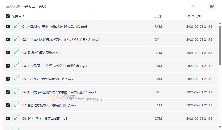 在当今竞争激烈的职场环境中,如何快速提升认知、掌握高效工作方法,是每个职场人脱颖而出的关键。本资源《谷歌腾讯阿里等顶级互联网公司工作法》音频课程,正是这样一份浓缩了顶级互联网公司精英思维与实践经验的宝典。它并非枯燥的理论说教,而是聚焦于认知升级、高效沟通、向上管理、职业规划等实战场景,将大厂精英的“软技能”和“硬方法”拆解为可直接应用的行动指南。这套资源尤其适合: