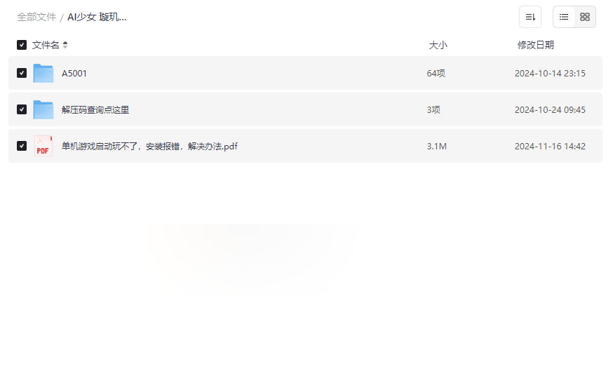 专门设立“解压码查询点这里”文件夹,内含解压码查询表(.xlsx格式)、备注说明及游戏合集目录(PDF),帮助用户快速解决安装问题。单机游戏常见问题解决方案(PDF)覆盖了启动失败、报错处理等典型情况,极大降低使用门槛。 - 用户友好:解压码结构化整理,避免混乱