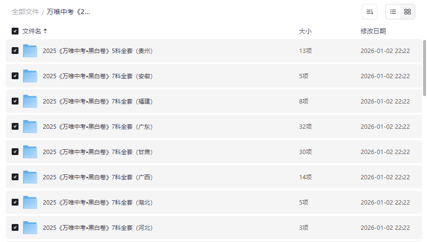 每科均配备逐题解析的答案文件(如河南“全科带答案”、陕西“七科黑白卷答案”),部分版本还提供可打印的答题卡(如广东、福建版),方便模拟考试场景,训练答题节奏与书写规范。 - 附加备考资源,提升复习效率