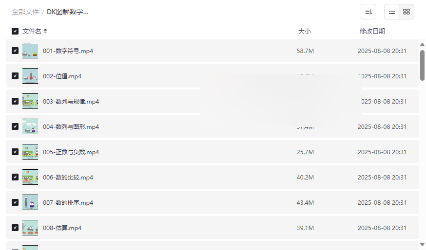 DK图解数学动画课程资源目录