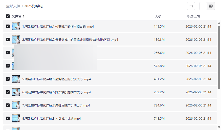 在竞争日益激烈的电商环境中,掌握系统化、标准化的运营方法是每一位淘宝/天猫卖家脱颖而出的关键。这份 “2025淘系电商标准化起店私教” 资源,正是为渴望突破瓶颈、实现店铺快速成长的商家量身打造。它深度解析了淘系平台最新的推广工具与运营逻辑,从付费推广的本质到新品打爆的全流程,提供了一套可复制、可执行的 “标准化起店” 方案。本资源集合了 付费推广策略详解、智能与手动计划实操、拉新收割闭环搭建、测图测款核心技巧以及新品打爆标准化流程 等核心模块,将复杂的电商运营拆解为清晰的步骤,非常适合: