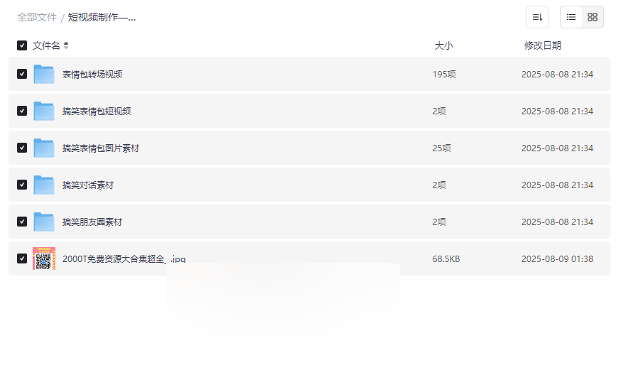 在短视频内容竞争日益激烈的今天,搞笑幽默素材已成为吸引流量、提升互动率的利器。本资源包收录了超过7000个高质量搞笑素材,涵盖表情包转场视频、热门影视片段、魔性笑声、动物搞笑瞬间、网络热梗等多种类型,不仅内容新颖、分类清晰,还支持快速调用与二次创作,极大提升了短视频制作的效率与趣味性。适合以下人群使用: