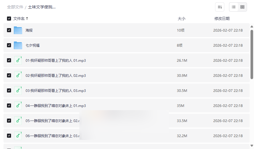“土味文学使我灵魂升华了”是一部极具特色的现代都市情感广播剧,以其轻松幽默的“土味”风格和引人入胜的剧情,在年轻听众中迅速走红。本资源集合了 第一季全12集正剧、多角色节日祝福音频、独家电话音福利以及高清宣传海报 等丰富内容,将“土味”的诙谐与真挚的情感巧妙融合,为听众带来沉浸式的听觉盛宴。本资源适合: