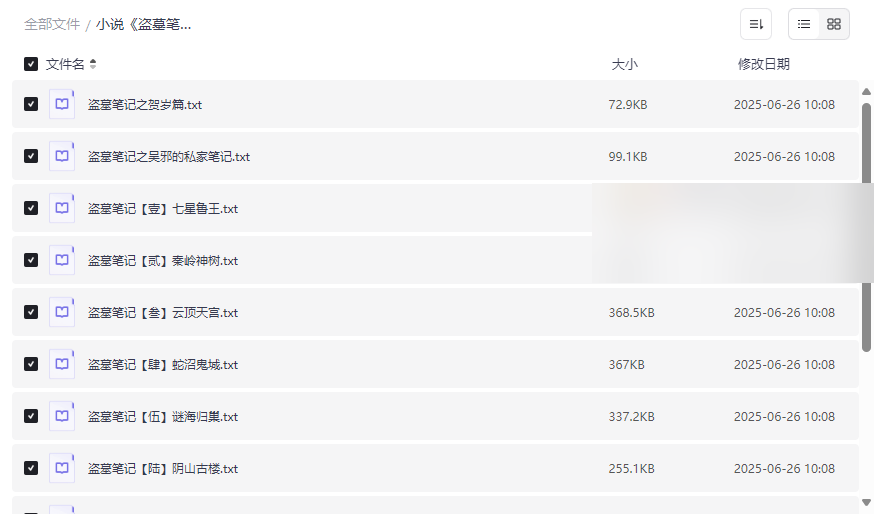 所有文件均为TXT格式,体积小、兼容性强,可在手机、平板、电纸书等多种设备上阅读。无需联网,随时随地沉浸于盗墓世界。