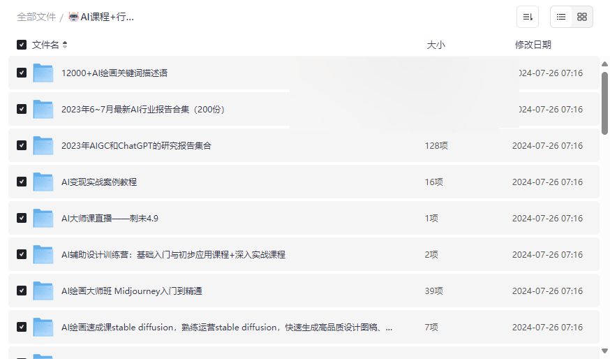 人工智能正以前所未有的速度改变我们的生活和工作方式。这份134GB超大全套AI资源包,汇集了2023年最新AI课程、实战案例、行业报告和工具素材,涵盖ChatGPT、Midjourney、Stable Diffusion等热门AI工具,是进入AI时代必备的学习宝库。本资源特别适合: