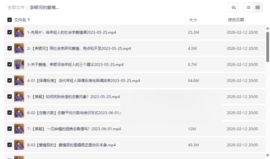 李银河的爱情课:中国青年的情感与婚姻(完结)资源目录