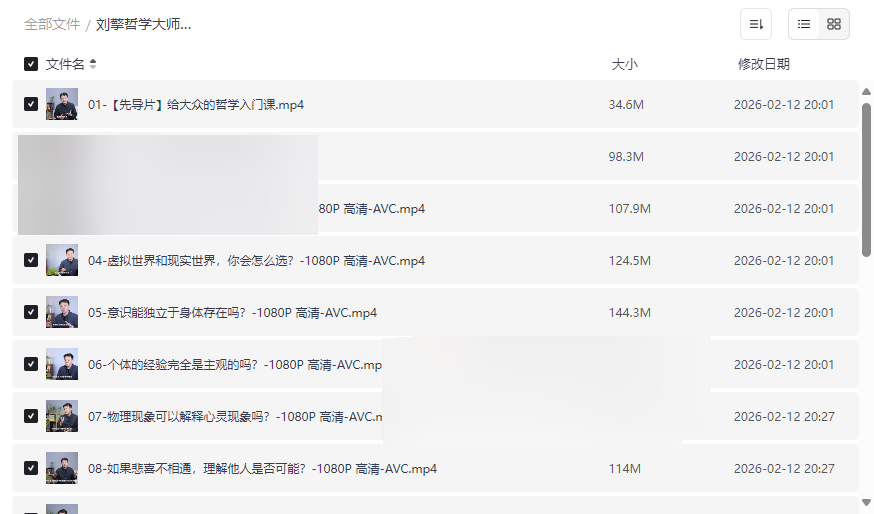 “刘擎哲学大师课”是华东师范大学教授、著名学者刘擎先生面向大众精心打造的一套系统性哲学入门课程。本资源完整收录了全部21节高清视频课程,从“思想实验”的独特视角切入,深入浅出地探讨了现实与虚拟、自我与意识、道德与正义、人生意义等哲学核心命题。课程并非枯燥的理论堆砌,而是通过引人入胜的设问和贴近生活的案例,将深邃的哲学思考转化为每个人都能参与的思想对话。这套高质量网盘资源尤其适合: