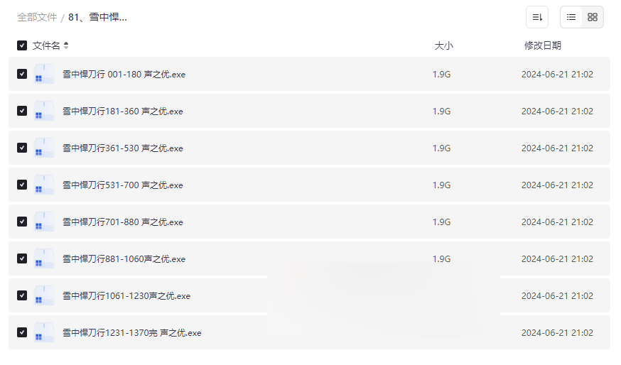 声之优作为知名配音团队,为本作注入了丰富的情感层次和角色个性。通过不同的音色、语调和节奏,生动再现了徐凤年、姜泥等主要角色的性格特点,配合适度的背景音效,让听众仿佛亲临雪中江湖。 - EXE格式便捷播放,兼容性强